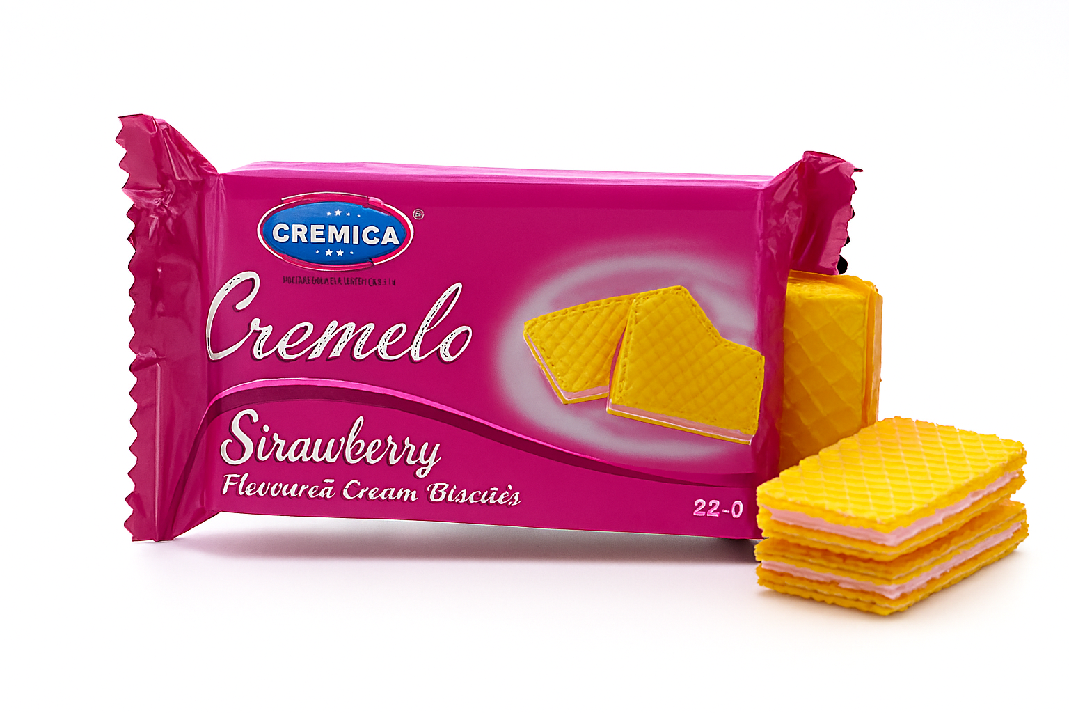 Las Cremica Strawberry Sandwich Cream Biscuits combinan textura crujiente con un relleno cremoso sabor fresa. Su formato de 22 g es perfecto para meriendas rápidas, distribución en combos o venta unitaria.